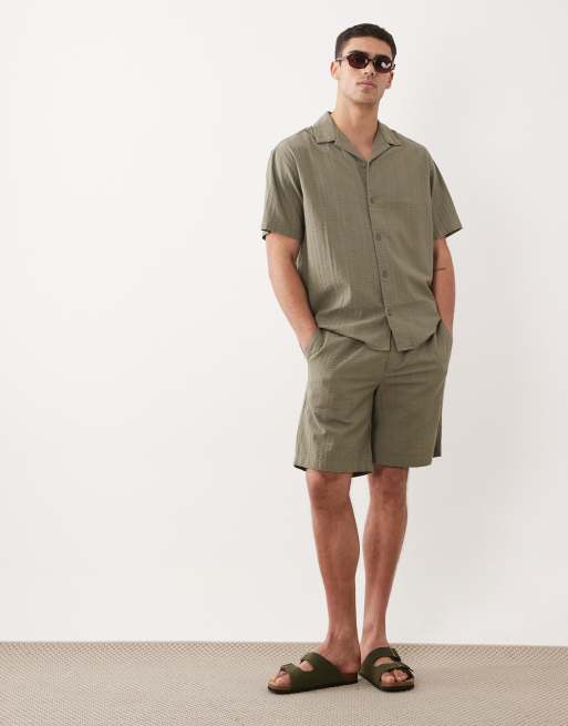 Jack & Jones textured shirt co-ord in khaki