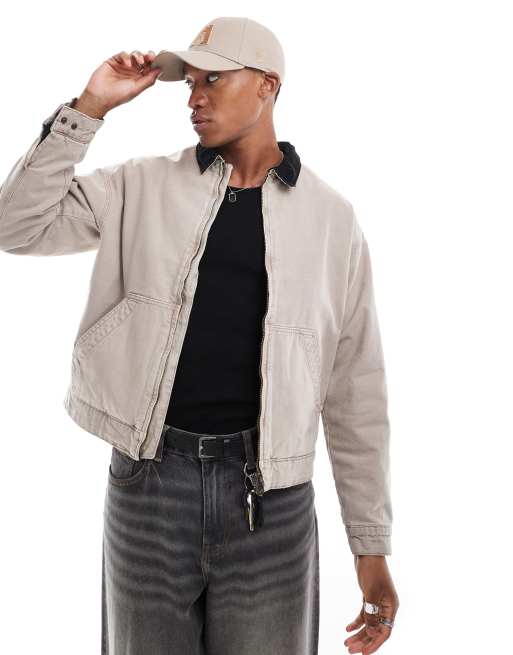 Jack & Jones twill carpenter jacket with cord collar in beige