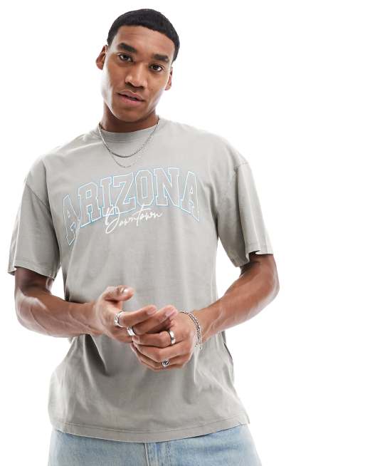 Jack & Jones washed oversized t-shirt with Arizona print in grey