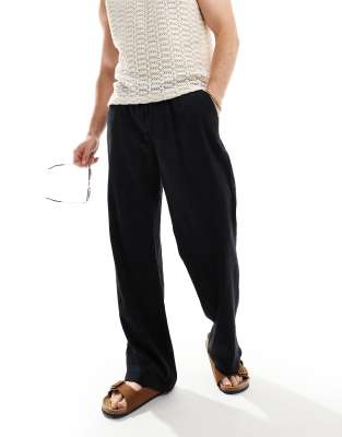 Jack & Jones wide leg crinkle trouser in black