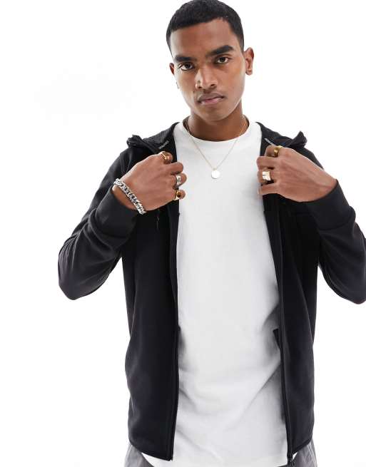 Jack & Jones zip through tech hoodie in black