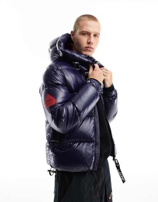 JACK1T EZ puffer down hooded jacket in ink and hyper red