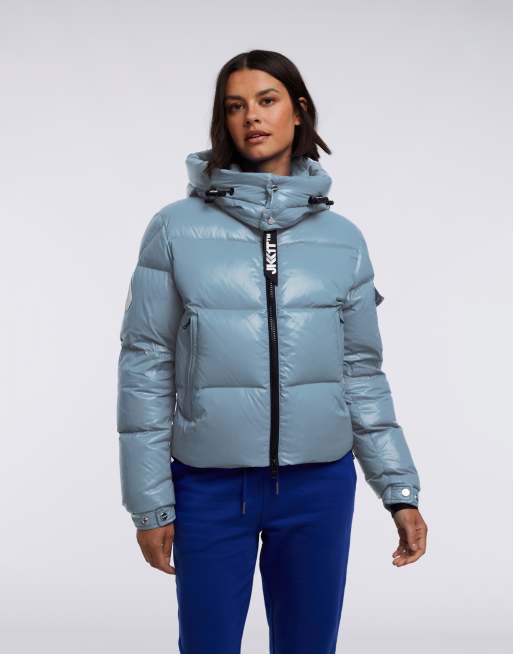 JACK1T EZ puffer down racer hooded jacket in powder blue and snow