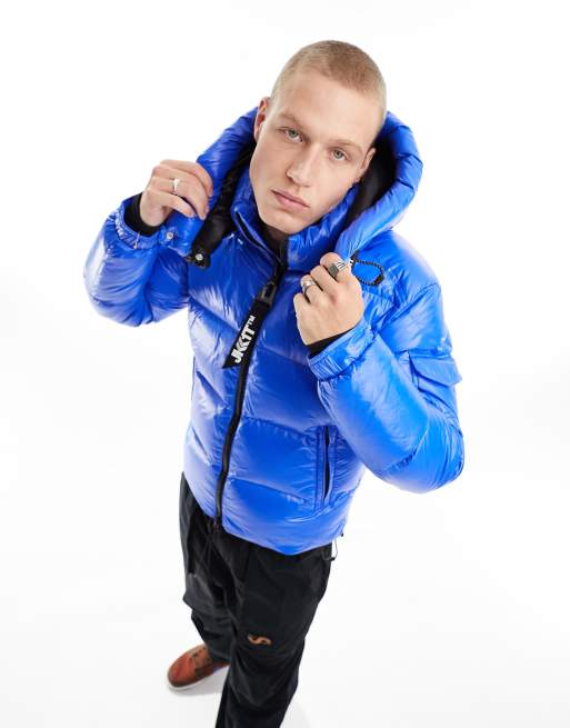 JACK1T EZ puffer hooded jacket in glacial blue and black