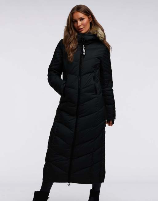 JACK1T vector ultra long fur down coat in black and natural