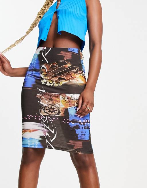 Jaded London graphic midi skirt co-ord in multi
