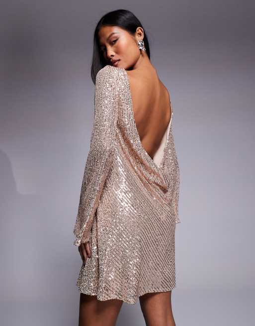 Jaded Rose Petite cowl back sequin mini dress in gold