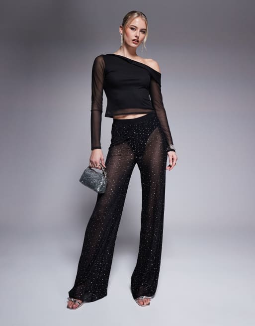 Jaded Rose Tall hotfix trouser co-ord in black