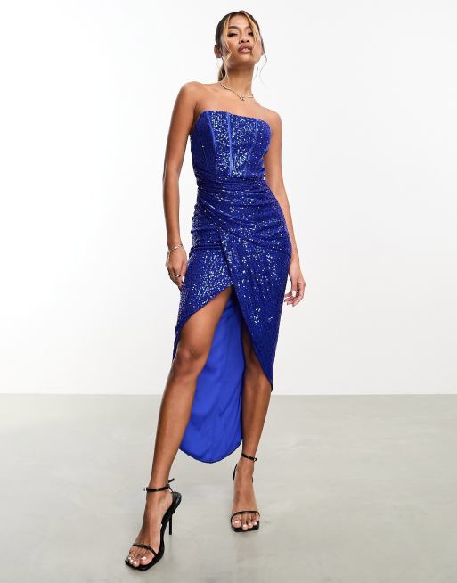Jaded Rose corset drape sequin maxi dress in electric blue