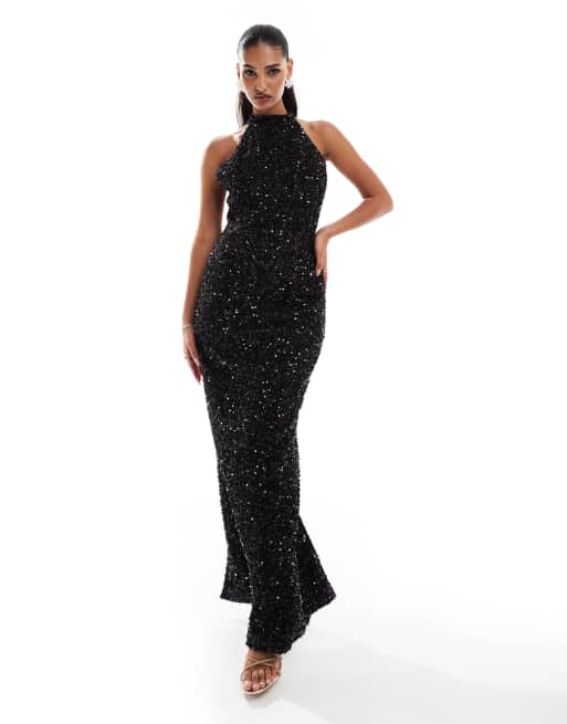 Jarlo halter neck sequin dress in black