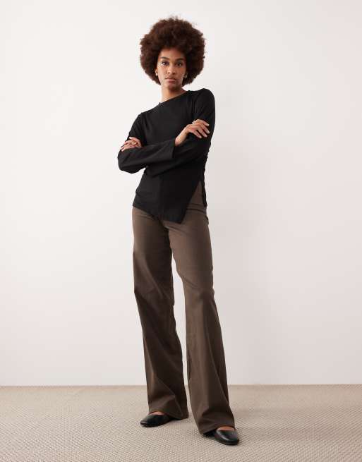 JDY Tall Iris high waist wide leg jeans in brown