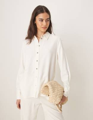 JDY Tall relaxed linen shirt co-ord in white