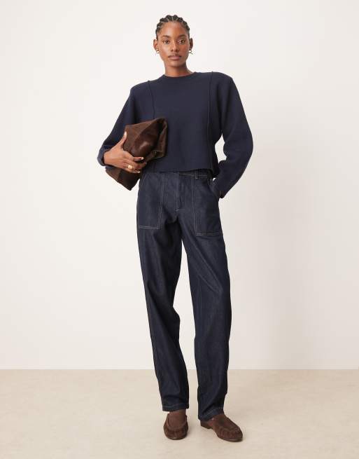 JDY Tall Sansa stitch detail high waisted barrel jeans in dark blue