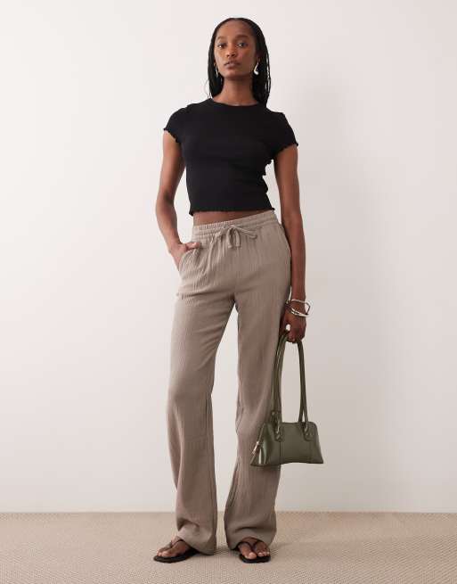 JDY Tall wide leg cheesecloth trousers in brown