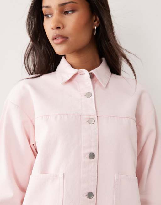 JDY boxy denim jacket with front pockets in pale pink