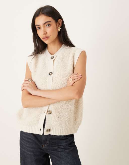 JDY button up fluffy knitted vest in cream