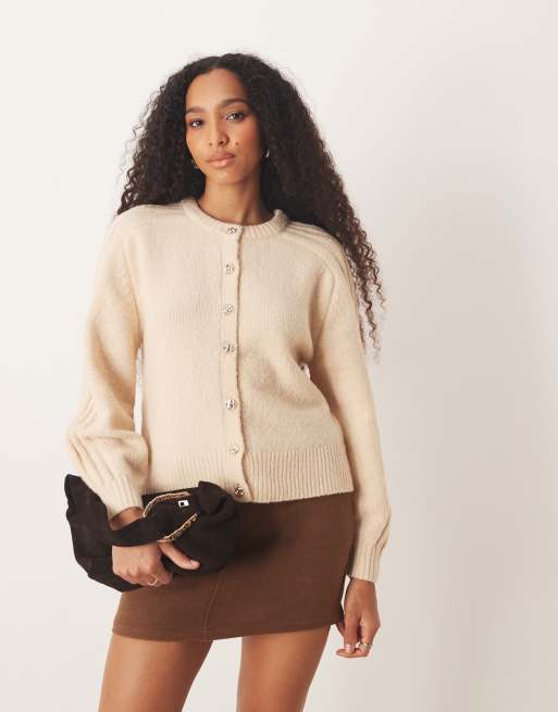 JDY crew neck cardigan with sleeve detail in cream