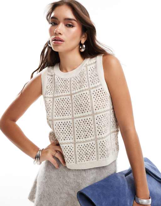 JDY cropped open knit vest in cream