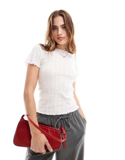 JDY lettuce hem pointelle top in white
