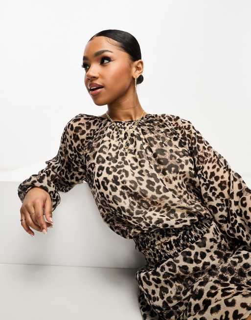 JDY long sleeve chiffon blouse co-ord in animal print