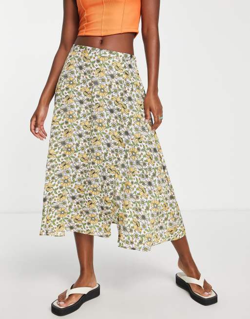 JDY midi skirt in yellow floral print
