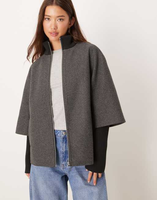 JDY sleeve detail coat in dark grey