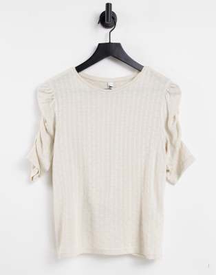JDY ulrikka 2/4 wrinkle jersey top in birch