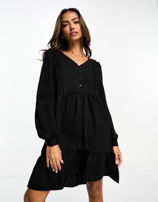 JDY v neck tiered mini dress in black