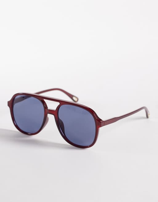 Jeepers Peepers aviator sunglasses in burgundy with blue lens
