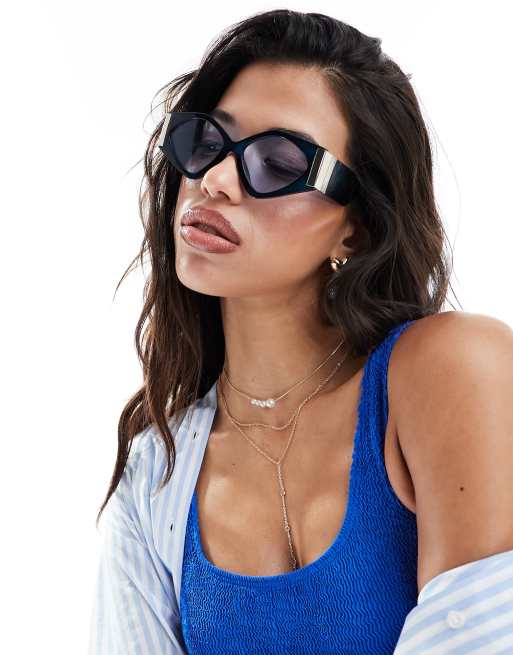 Jeepers Peepers cat eye sunglasses in blue with gold