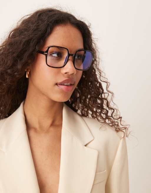 Jeepers Peepers large square blue light glasses in tortoiseshell