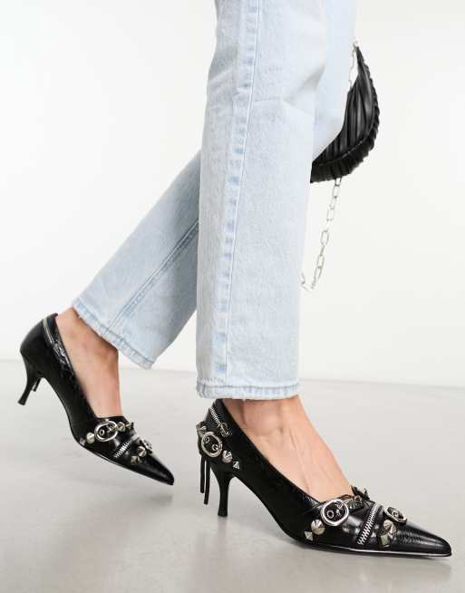 Jeffrey Campbell Roxine kitten heeled shoe with hardware in black