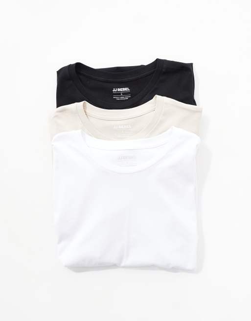 JJ Rebel 3 pack oversize t-shirts in black, white & beige