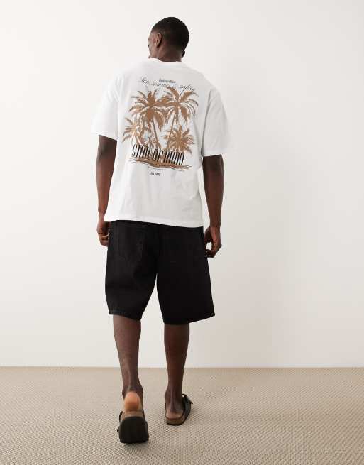 JJ Rebel oversized t-shirt with palm tree back print in white