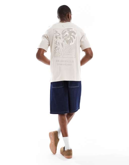 JJ Rebel t-shirt with backprint leaf print in cream