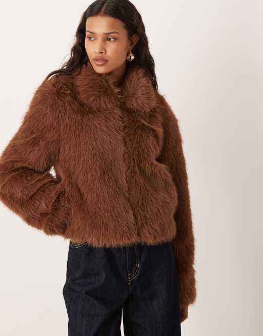 JJXX cropped faux fur zip coat in brown