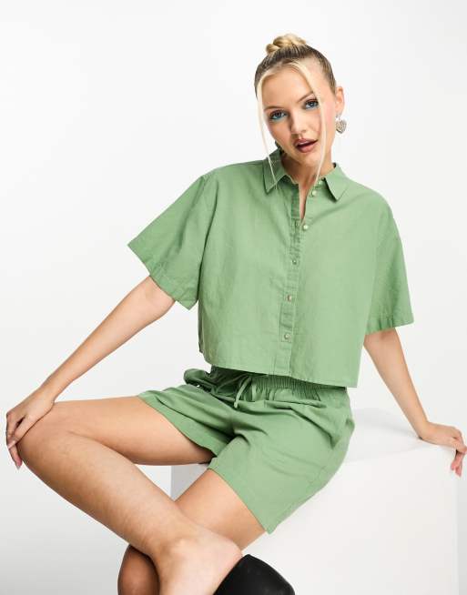 JJXX cropped shirt co-ord in khaki