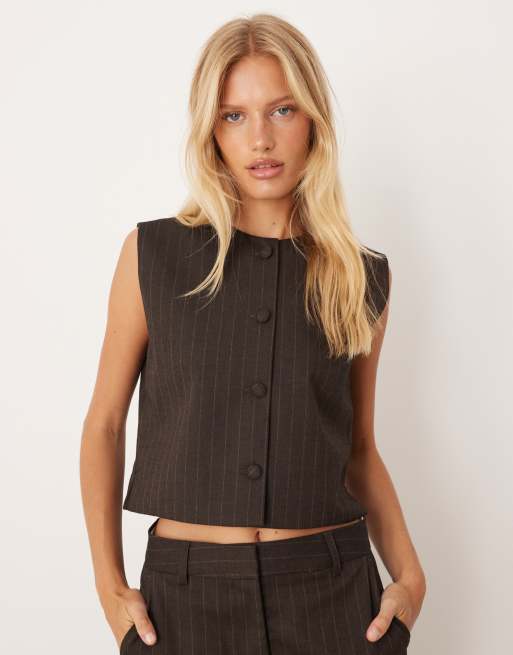 JJXX pinstripe co ord waistcoat in brown