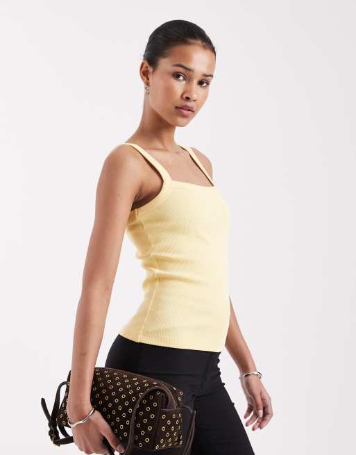 JJXX ribbed square neck vest in butter yellow