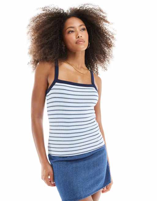 JJXX stripe ribbed strap top in blue navy