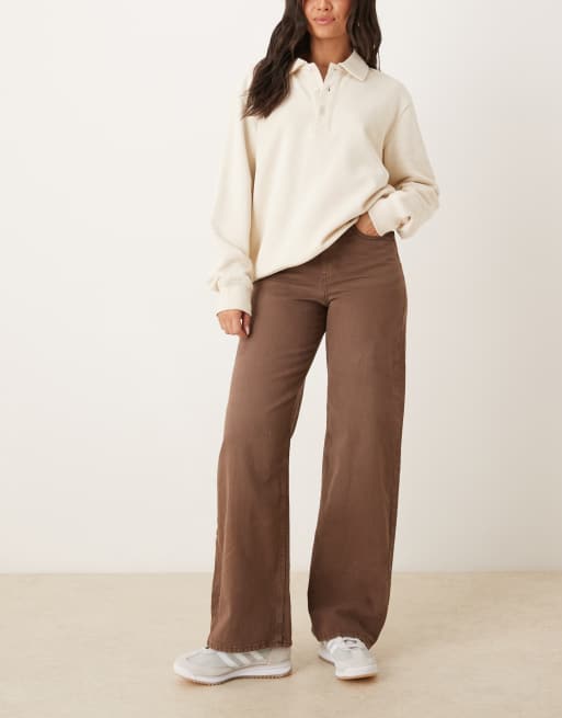 JJXX Tokyo wide leg jeans in washed brown