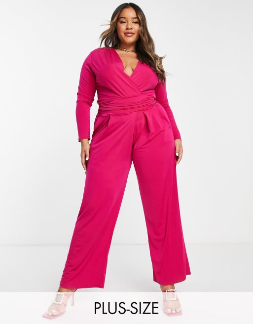 John Zack Plus summer bright slouchy jumpsuit in fuchsia pink