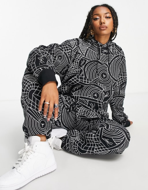 Jordan Brooklyn AOP fleece tracksuit in black