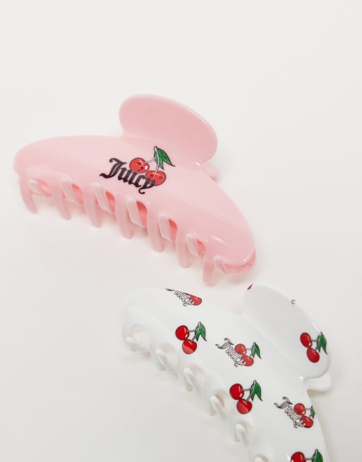 Juicy Couture 2 pack medium hair slips in cherry pink and white