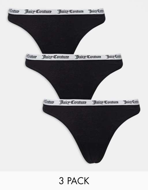 Juicy Couture 3 pack cotton thongs in black