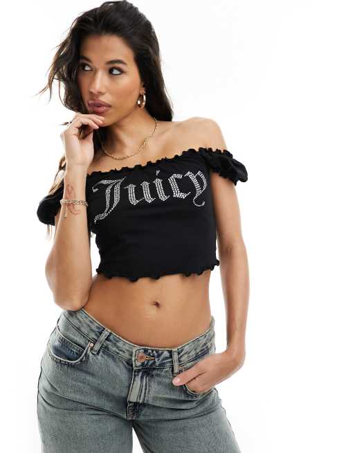 Juicy Couture diamante bardot top in black
