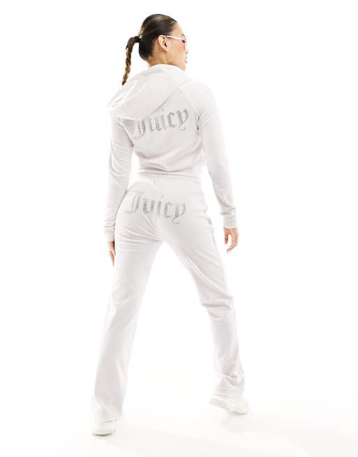 Juicy Couture diamante logo velour straight leg joggers co-ord in cream