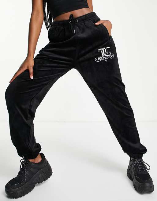 Juicy Couture velour joggers co-ord with cuffed ankles in black