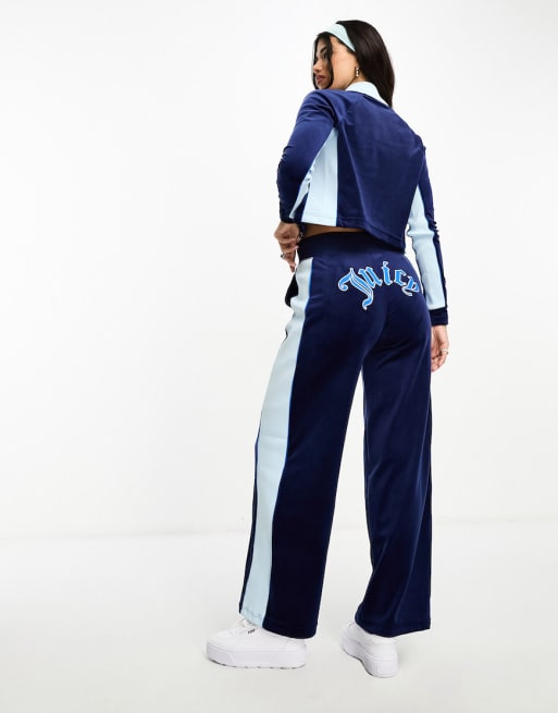 Juicy Couture velour straight leg joggers and hoodie with collegiate logo co-ord