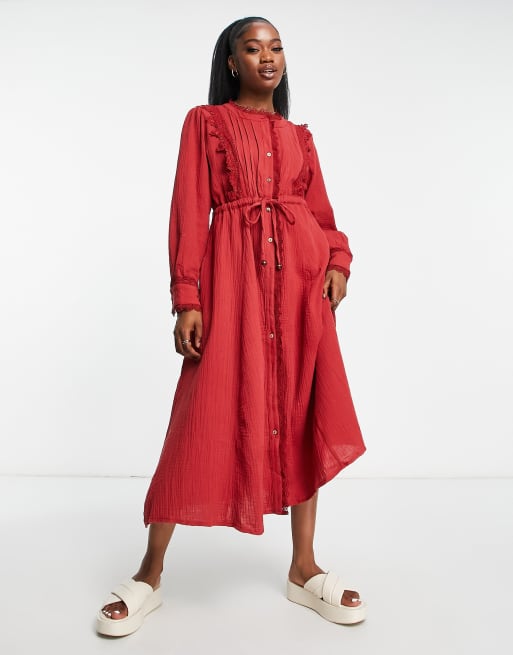Just Me lace front midi dress with tie waist in red